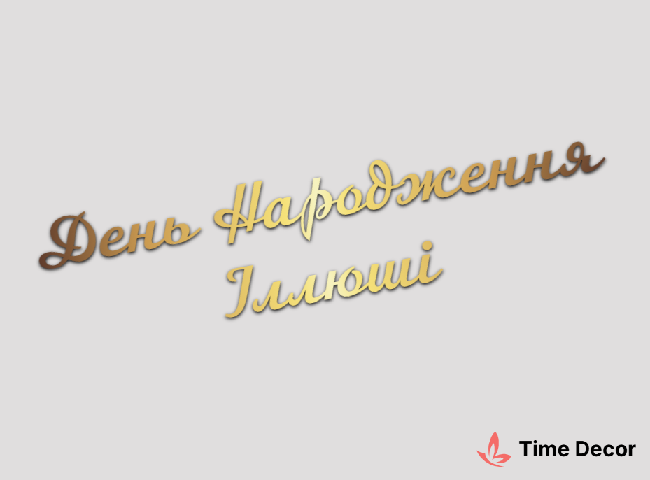 Пластиковий напис "День Народження Іллюші" – дзеркальний або матовий пластик, можливе виготовлення з клейкою зворотною поверхнею для легкого монтажу.