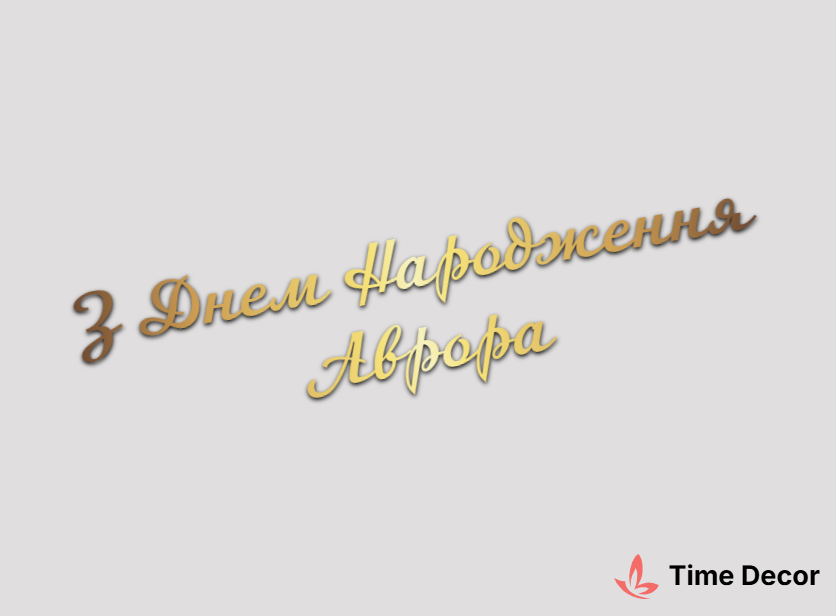 Пластиковий напис "З Днем Народження Аврора" – дзеркальний або матовий пластик, можливе виготовлення з клейкою зворотною поверхнею для легкого монтажу.