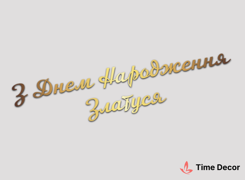 Пластиковий напис "З Днем Народження Златуся" – дзеркальний або матовий пластик, можливе виготовлення з клейкою зворотною поверхнею для легкого монтажу.