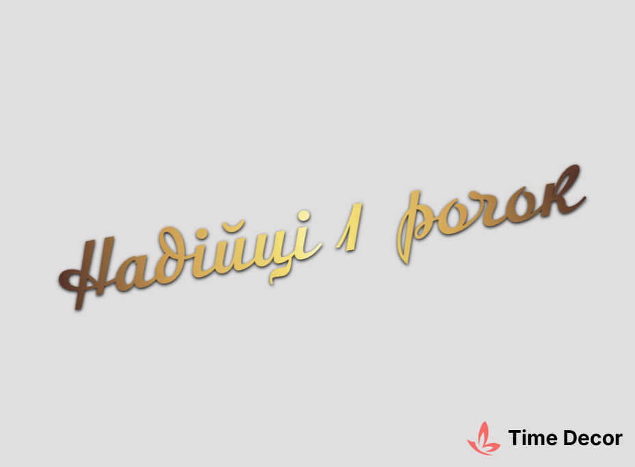 Пластиковий напис "Надійці 1 рочок" – дзеркальний або матовий пластик, можливе виготовлення з клейкою зворотною поверхнею для легкого монтажу.