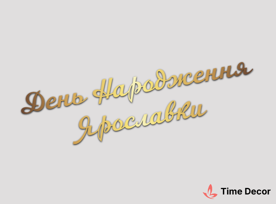 Пластиковий напис "День Народження Ярославки" – дзеркальний або матовий пластик, можливе виготовлення з клейкою зворотною поверхнею для легкого монтажу.