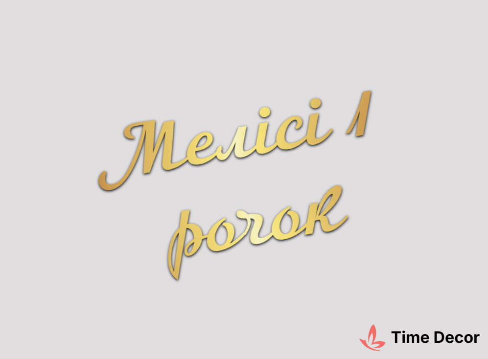 Пластиковий напис "Мелісі 1 рочок" – дзеркальний або матовий пластик, можливе виготовлення з клейкою зворотною поверхнею для легкого монтажу.