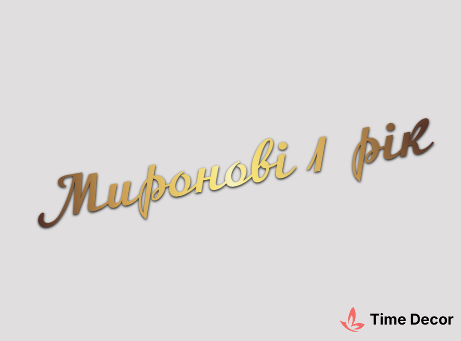 Пластиковий напис "Миронові 1 рік" – дзеркальний або матовий пластик, можливе виготовлення з клейкою зворотною поверхнею для легкого монтажу.
