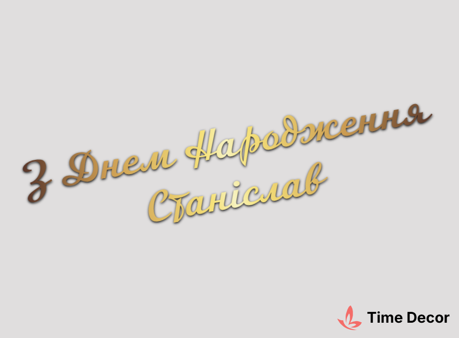 Пластиковий напис "З Днем Народження Станіслав" – дзеркальний або матовий пластик, можливе виготовлення з клейкою зворотною поверхнею для легкого монтажу.