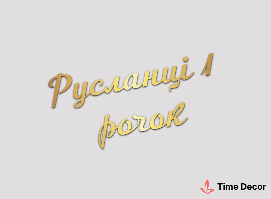 Пластиковий напис "Русланці 1 рочок" – дзеркальний або матовий пластик, можливе виготовлення з клейкою зворотною поверхнею для легкого монтажу.