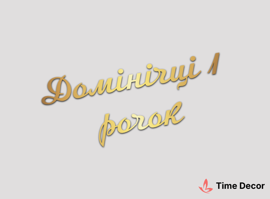 Пластиковий напис "Домінічці 1 рочок" – дзеркальний або матовий пластик, можливе виготовлення з клейкою зворотною поверхнею для легкого монтажу.