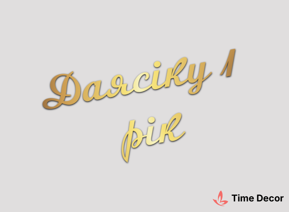 Пластиковий напис "Даясіку 1 рік" – дзеркальний або матовий пластик, можливе виготовлення з клейкою зворотною поверхнею для легкого монтажу.