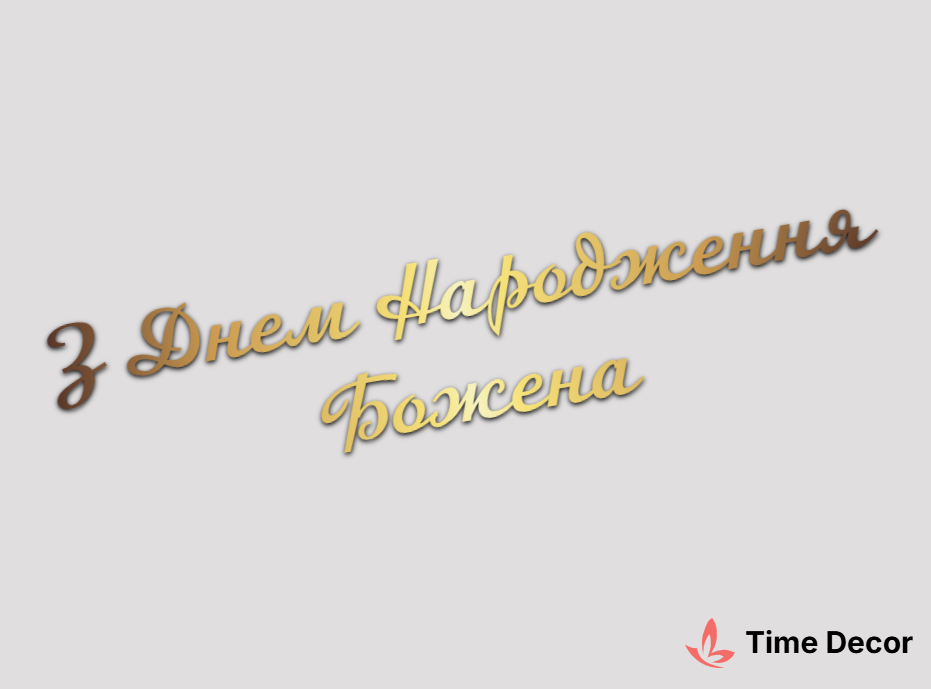 Пластиковий напис "З Днем Народження Божена" – дзеркальний або матовий пластик, можливе виготовлення з клейкою зворотною поверхнею для легкого монтажу.