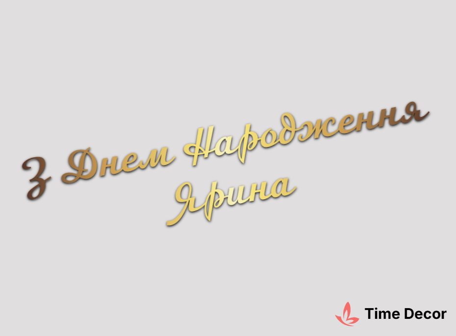 Пластиковий напис "З Днем Народження Ярина" – дзеркальний або матовий пластик, можливе виготовлення з клейкою зворотною поверхнею для легкого монтажу.