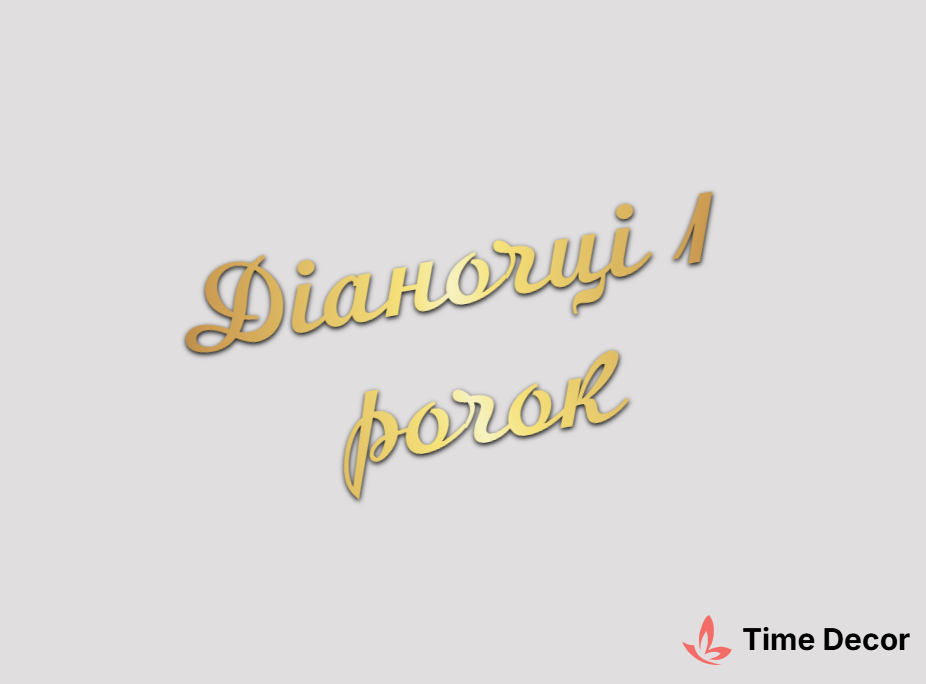 Пластиковий напис "Діаночці 1 рочок" – дзеркальний або матовий пластик, можливе виготовлення з клейкою зворотною поверхнею для легкого монтажу.