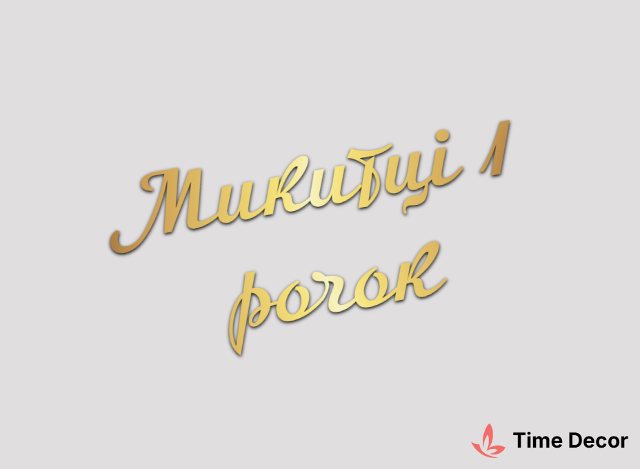 Пластиковий напис "Микитці 1 рочок" – дзеркальний або матовий пластик, можливе виготовлення з клейкою зворотною поверхнею для легкого монтажу.