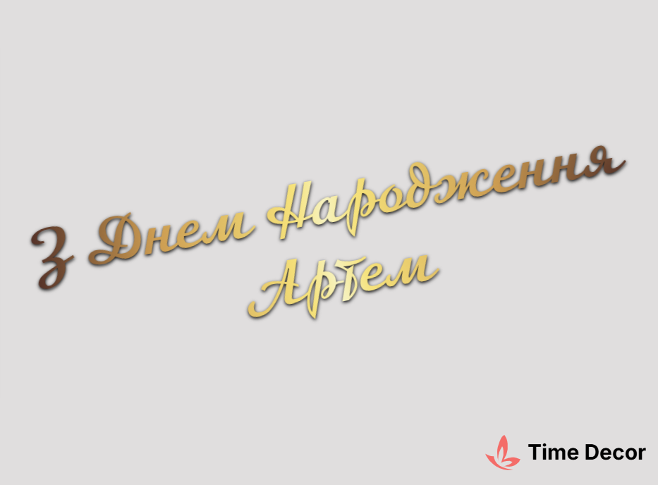 Пластиковий напис "З Днем Народження Артем" – дзеркальний або матовий пластик, можливе виготовлення з клейкою зворотною поверхнею для легкого монтажу.