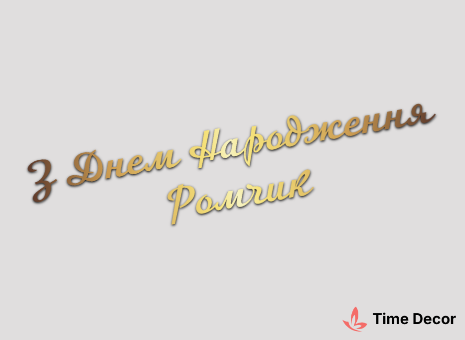 Пластиковий напис "З Днем Народження Ромчик" – дзеркальний або матовий пластик, можливе виготовлення з клейкою зворотною поверхнею для легкого монтажу.