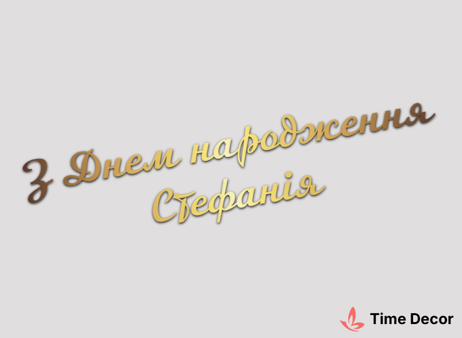 Пластиковий напис "З Днем народження Стефанія" – дзеркальний або матовий пластик, можливе виготовлення з клейкою зворотною поверхнею для легкого монтажу.