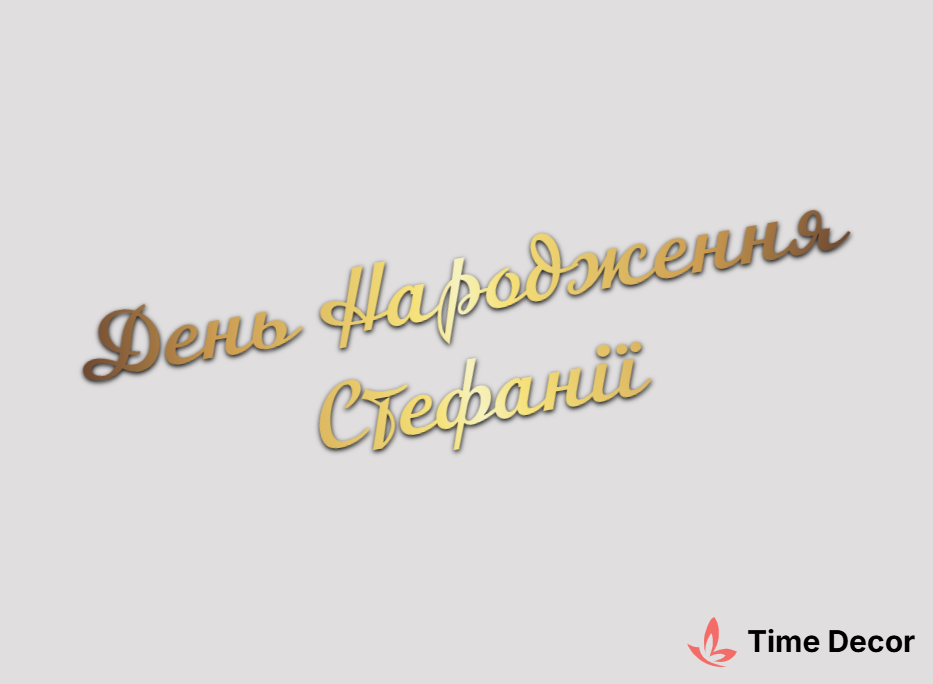 Пластиковий напис "День Народження Стефанії" – дзеркальний або матовий пластик, можливе виготовлення з клейкою зворотною поверхнею для легкого монтажу.