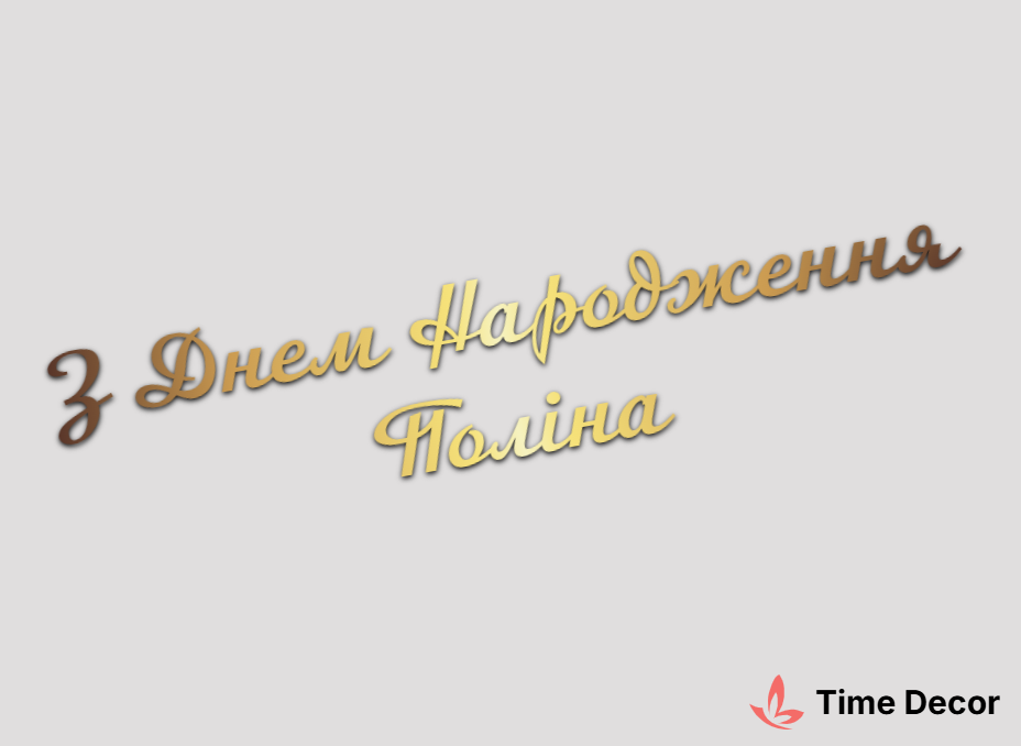 Пластиковий напис "З Днем Народження Поліна" – дзеркальний або матовий пластик, можливе виготовлення з клейкою зворотною поверхнею для легкого монтажу.
