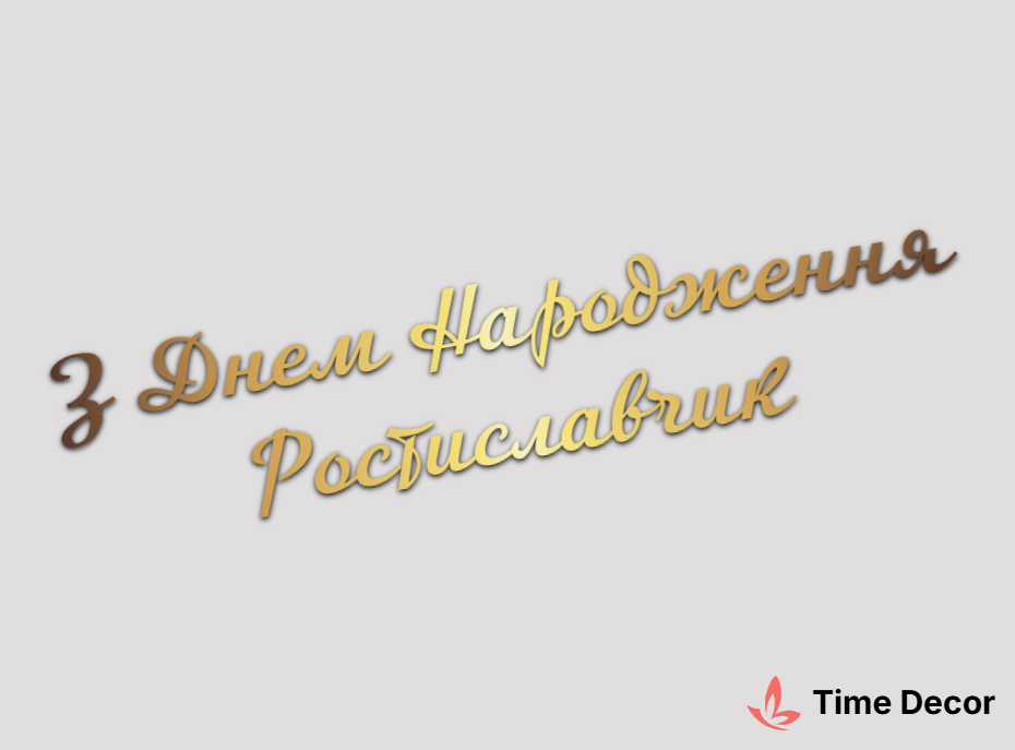 Пластиковий напис "З Днем Народження Ростиславчик" – дзеркальний або матовий пластик, можливе виготовлення з клейкою зворотною поверхнею для легкого монтажу.