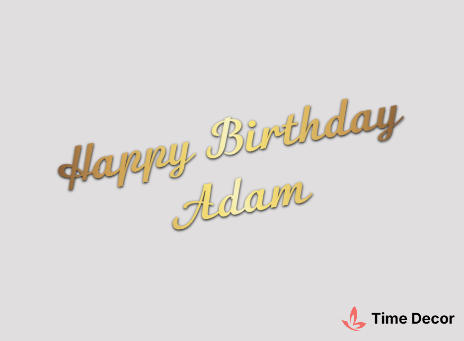Пластиковий напис "Happy Birthday Adam" – дзеркальний або матовий пластик, можливе виготовлення з клейкою зворотною поверхнею для легкого монтажу.