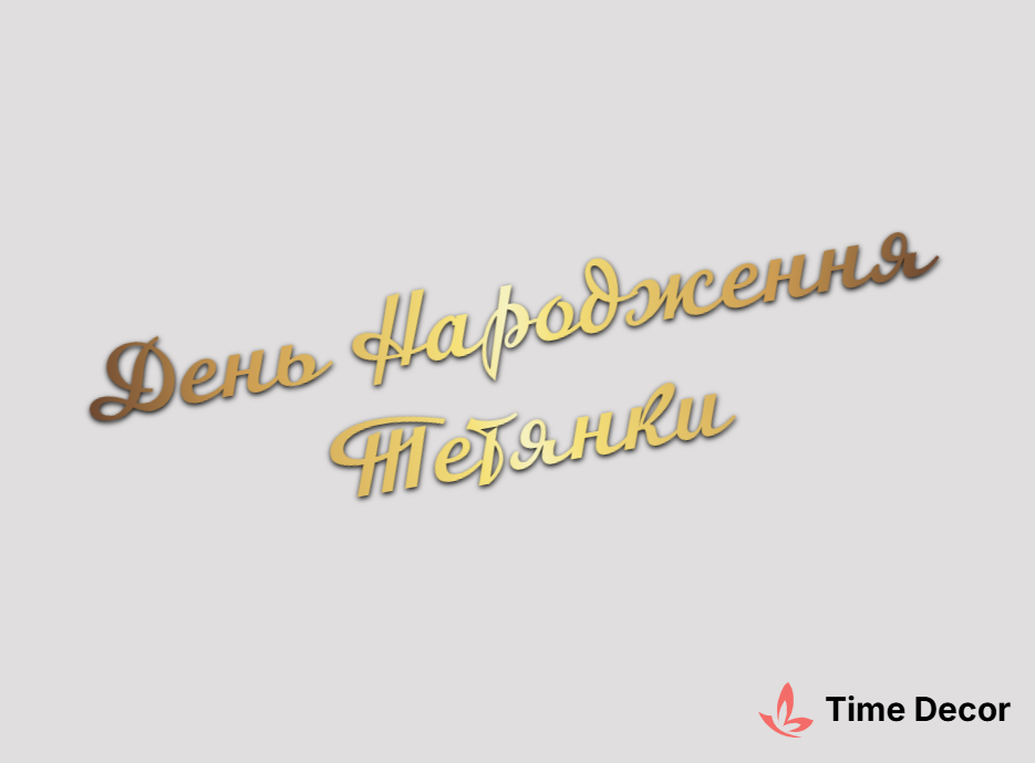 Пластиковий напис "День Народження Тетянки" – дзеркальний або матовий пластик, можливе виготовлення з клейкою зворотною поверхнею для легкого монтажу.