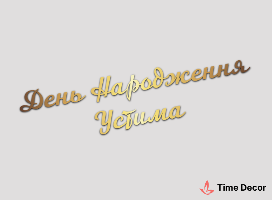 Пластиковий напис "День Народження Устима" – дзеркальний або матовий пластик, можливе виготовлення з клейкою зворотною поверхнею для легкого монтажу.