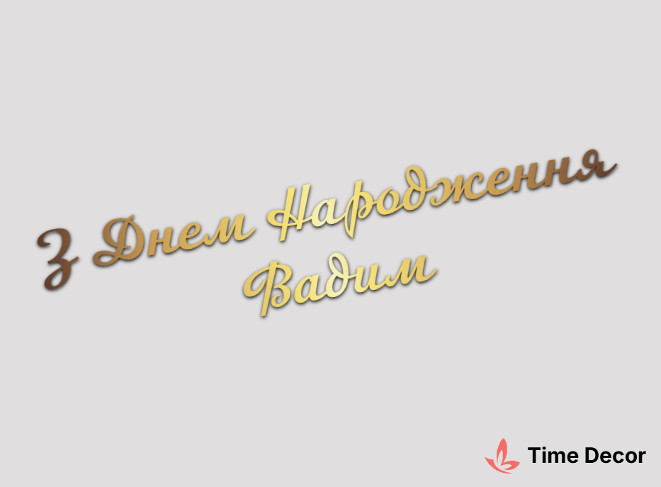 Пластиковий напис "З Днем Народження Вадим" – дзеркальний або матовий пластик, можливе виготовлення з клейкою зворотною поверхнею для легкого монтажу.
