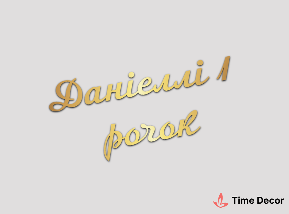 Пластиковий напис "Даніеллі 1 рочок" – дзеркальний або матовий пластик, можливе виготовлення з клейкою зворотною поверхнею для легкого монтажу.