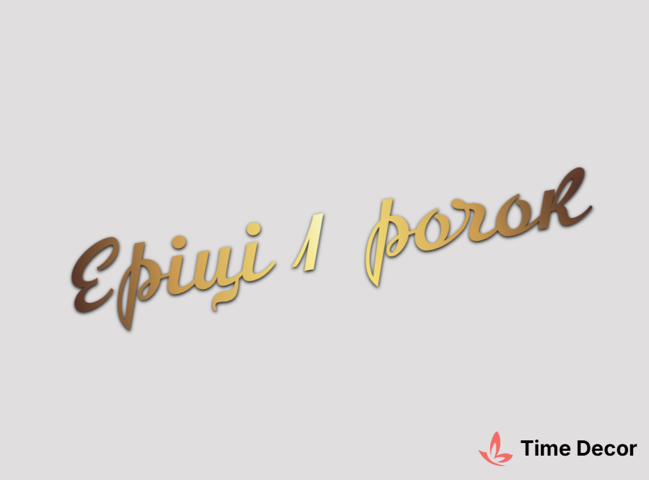 Пластиковий напис "Еріці 1 рочок" – дзеркальний або матовий пластик, можливе виготовлення з клейкою зворотною поверхнею для легкого монтажу.