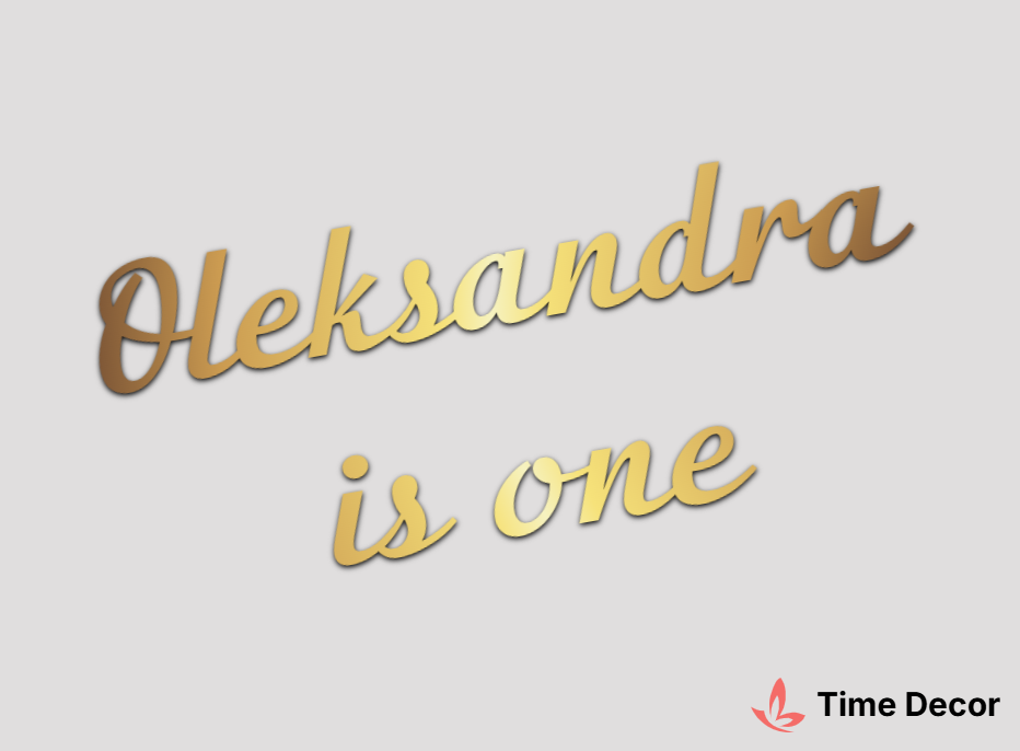 Глітерний напис "Oleksandra is one" – розкішний варіант у блискучих відтінках для святкового оформлення.