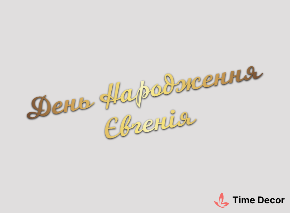 Пластиковий напис "День Народження Євгенія" – дзеркальний або матовий пластик, можливе виготовлення з клейкою зворотною поверхнею для легкого монтажу.