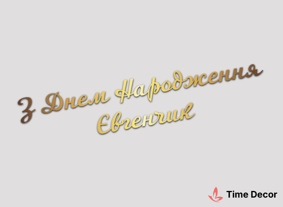 Пластиковий напис "З Днем Народження Євгенчик" – дзеркальний або матовий пластик, можливе виготовлення з клейкою зворотною поверхнею для легкого монтажу.