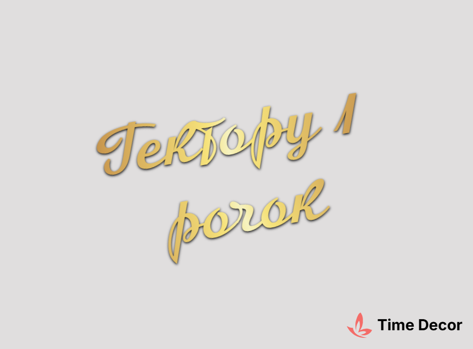 Пластиковий напис "Гектору 1 рочок" – дзеркальний або матовий пластик, можливе виготовлення з клейкою зворотною поверхнею для легкого монтажу.