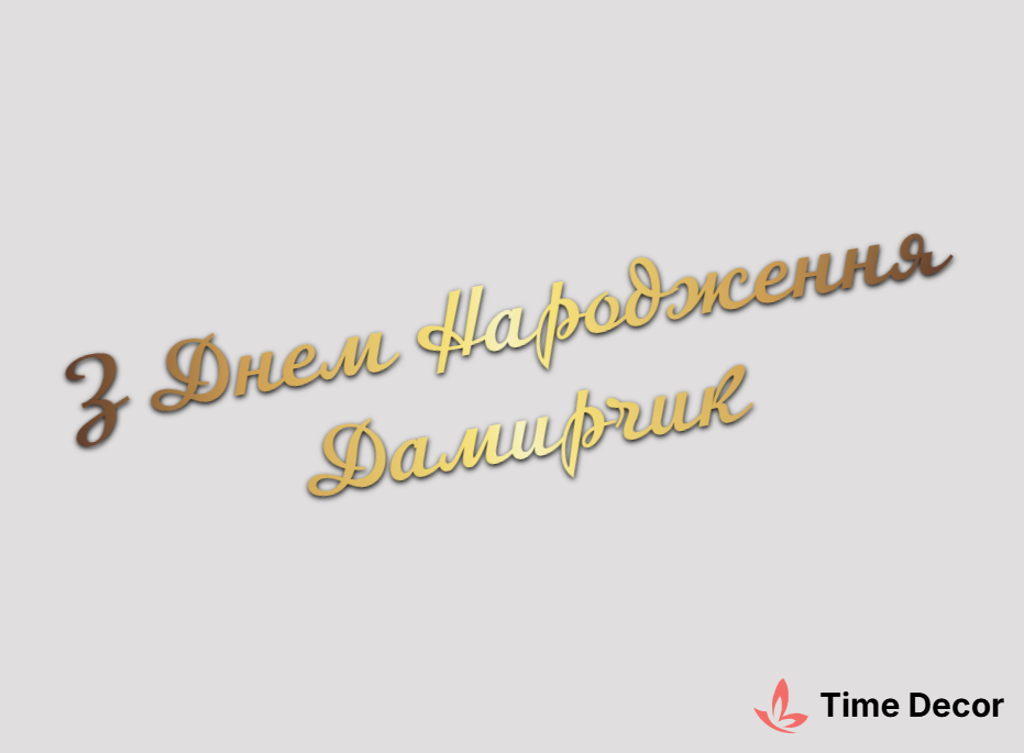 Пластиковий напис "З Днем Народження Дамирчик" – дзеркальний або матовий пластик, можливе виготовлення з клейкою зворотною поверхнею для легкого монтажу.