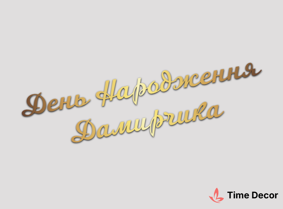 Пластиковий напис "День Народження Дамирчика" – дзеркальний або матовий пластик, можливе виготовлення з клейкою зворотною поверхнею для легкого монтажу.