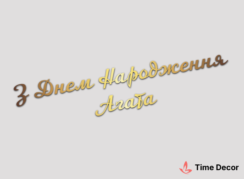 Пластиковий напис "З Днем Народження Агата" – дзеркальний або матовий пластик, можливе виготовлення з клейкою зворотною поверхнею для легкого монтажу.