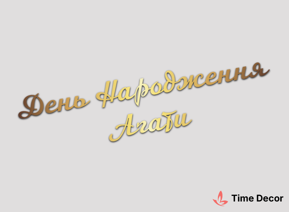 Пластиковий напис "День Народження Агати" – дзеркальний або матовий пластик, можливе виготовлення з клейкою зворотною поверхнею для легкого монтажу.