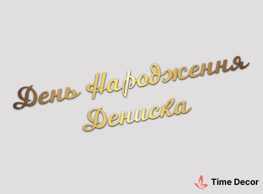 Пластиковий напис "День Народження Дениска" – дзеркальний або матовий пластик, можливе виготовлення з клейкою зворотною поверхнею для легкого монтажу.
