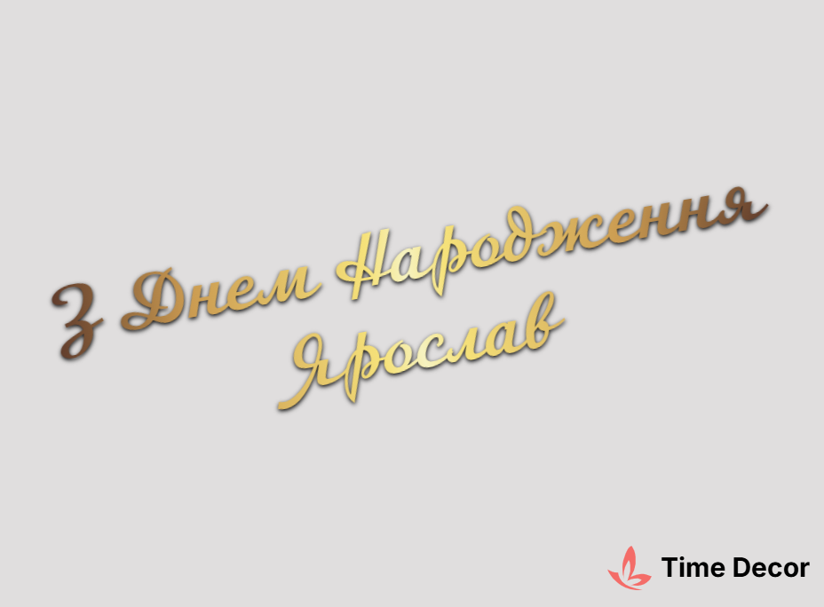 Пластиковий напис "З Днем Народження Ярослав" – дзеркальний або матовий пластик, можливе виготовлення з клейкою зворотною поверхнею для легкого монтажу.
