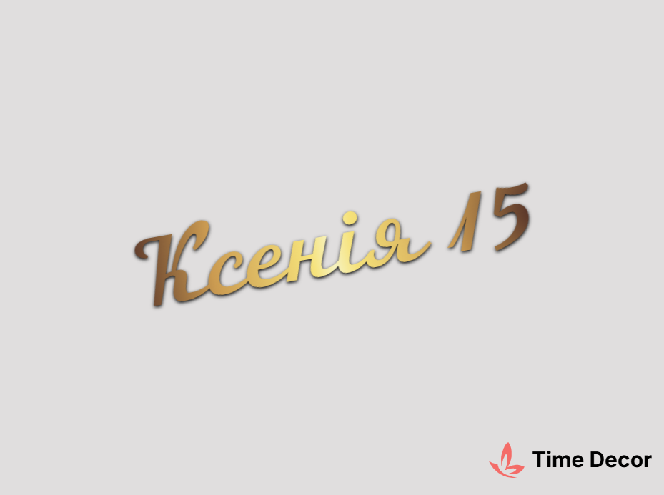 Пластиковий напис "Ксенія 15" – дзеркальний або матовий пластик, можливе виготовлення з клейкою зворотною поверхнею для легкого монтажу.