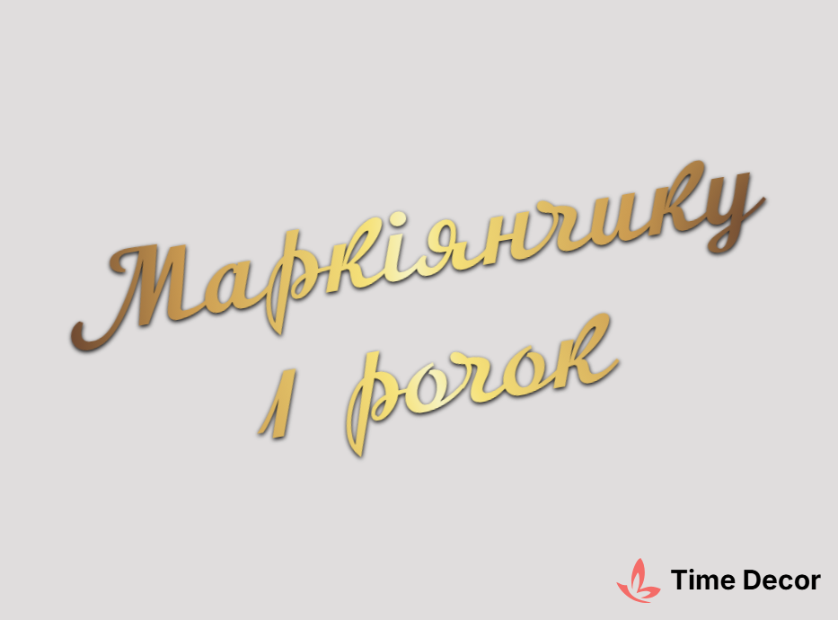 Пластиковий напис "Маркіянчику 1 рочок" – дзеркальний або матовий пластик, можливе виготовлення з клейкою зворотною поверхнею для легкого монтажу.