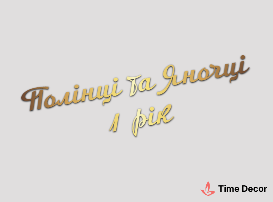 Пластиковий напис "Полінці та Яночці 1 рік" – дзеркальний або матовий пластик, можливе виготовлення з клейкою зворотною поверхнею для легкого монтажу.