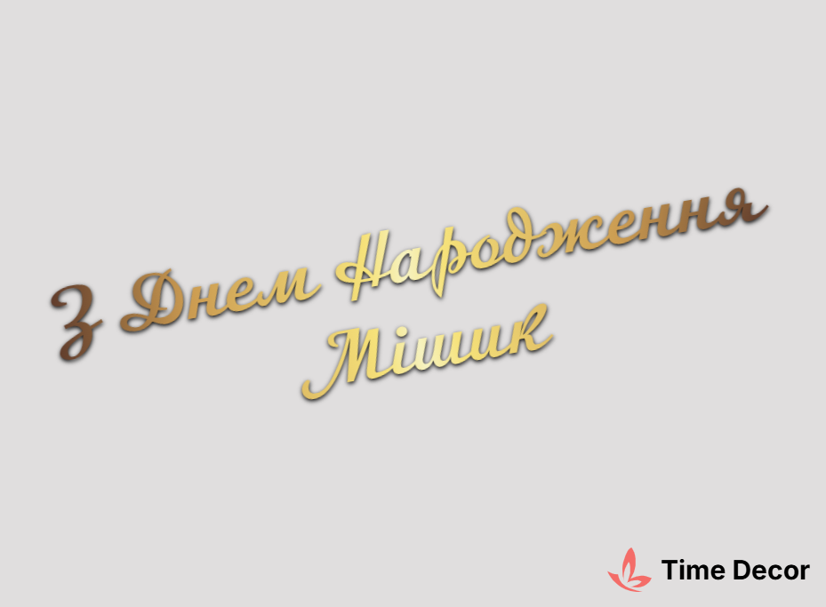 Пластиковий напис "З Днем Народження Мішик" – дзеркальний або матовий пластик, можливе виготовлення з клейкою зворотною поверхнею для легкого монтажу.