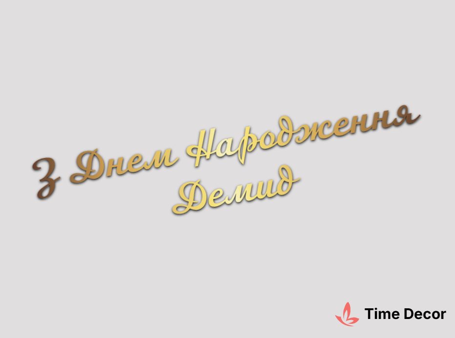 Пластиковий напис "З Днем Народження Демид" – дзеркальний або матовий пластик, можливе виготовлення з клейкою зворотною поверхнею для легкого монтажу.