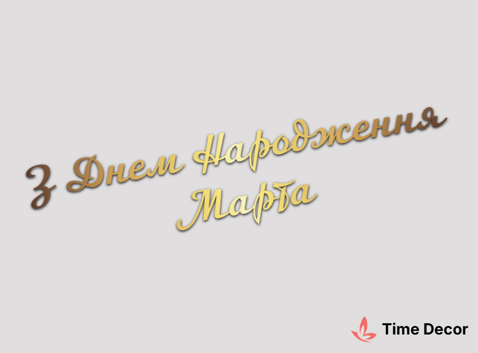 Пластиковий напис "З Днем Народження Марта" – дзеркальний або матовий пластик, можливе виготовлення з клейкою зворотною поверхнею для легкого монтажу.
