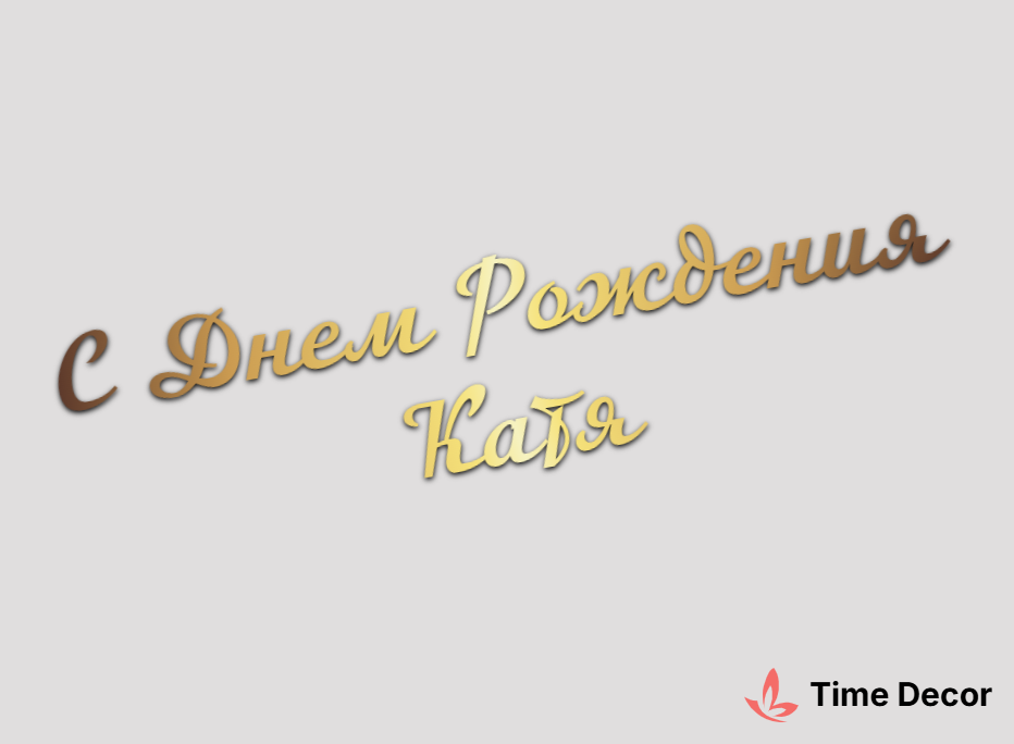 Пластиковий напис "С Днем Рождения Катя" – дзеркальний або матовий пластик, можливе виготовлення з клейкою зворотною поверхнею для легкого монтажу.