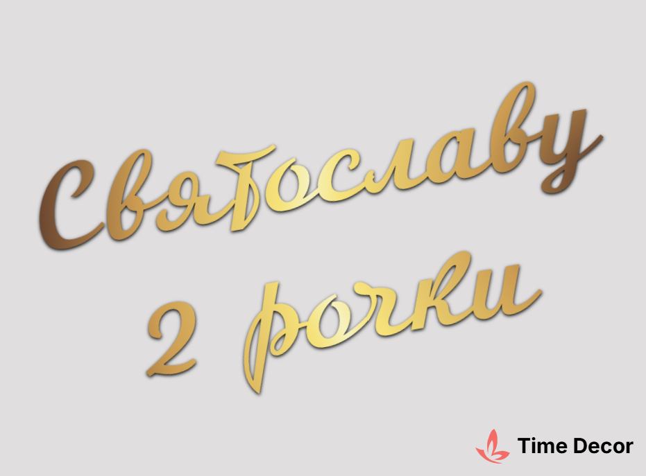 Пластиковий напис "Святославу 2 рочки" – дзеркальний або матовий пластик, можливе виготовлення з клейкою зворотною поверхнею для легкого монтажу.