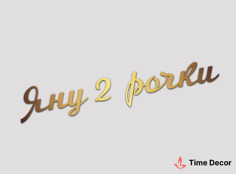 Пластиковий напис "Яну 2 рочки" – дзеркальний або матовий пластик, можливе виготовлення з клейкою зворотною поверхнею для легкого монтажу.
