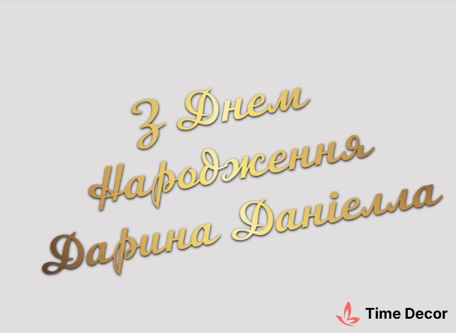 Пластиковий напис "З Днем Народження Дарина Даніелла" – дзеркальний або матовий пластик, можливе виготовлення з клейкою зворотною поверхнею для легкого монтажу.