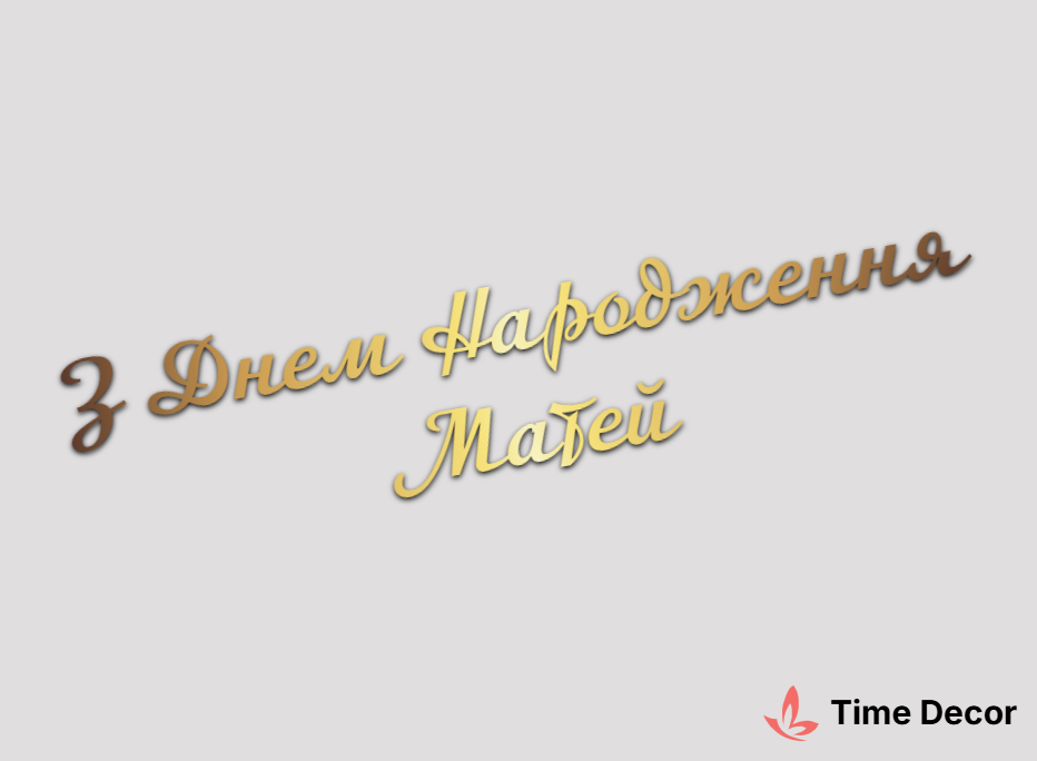 Пластиковий напис "З Днем Народження Матей" – дзеркальний або матовий пластик, можливе виготовлення з клейкою зворотною поверхнею для легкого монтажу.