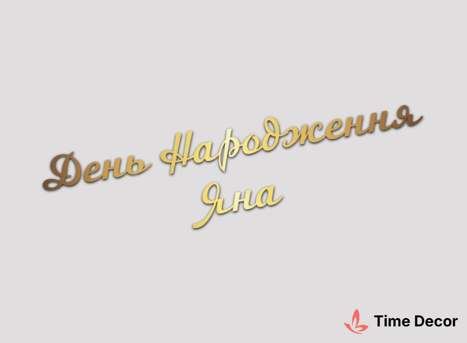 Пластиковий напис "День Народження Яна" – дзеркальний або матовий пластик, можливе виготовлення з клейкою зворотною поверхнею для легкого монтажу.
