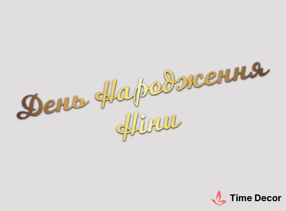 Пластиковий напис "День Народження Ніни" – дзеркальний або матовий пластик, можливе виготовлення з клейкою зворотною поверхнею для легкого монтажу.